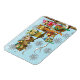 Eine Gruppe von jungen niedlichen Kätzchen, die im Winter draußen auf den Ästen der Bäume sitzen. Schnee und große Schneeflocken fallen um die Eulen herum.