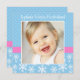 Eine trendige pinkfarbene und blaue Schneeflocke Wintergrasland Geburtstagsfeier. Erleben Sie ein wunderschönes Party zum 1. Geburtstag. Fügen Sie einfach Ihr eigenes Foto hinzu und personalisieren Sie es mit Ihren Informationen. Um Ihr Foto zu verkleinern und zu positionieren, klicken Sie auf den Knopf "IT KONZENTRIEREN".