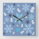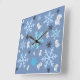 Niedliche Schneemänner und Schneeflocken in aquama Quadratische Wanduhr