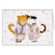 Zwei Cartoon Katzen, eine Orange und eine Calico schmücken sich vor dieser bezaubernden Valentinstag-Karte. Jede Katze trägt ein Bademantel und ein Süßwarenherz mit einer Liebe. Die Bilder werden auf einem rosa Hintergrund des Herzens platziert. Das Innere der Karte weist das gleiche Hintergrundmuster mit zwei benutzerdefinierten Textfeldern auf.