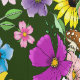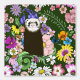 Ein niedliches Schokoladenbröckchen, das in einer dunkelgrünen Umgebung zwischen farbenfrohen Blume sitzt