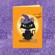 Niedliche Schwarze Katze auf Besenhalskarte Karte