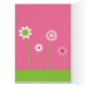 Eine leere Notenkarte mit einer originalen Mango Moon-Abbildung einer schwarzen Katze, die einen Schmetterling zwischen skurrilen Blume sieht.
