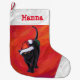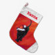 Niedliche Schwarze Katze in Weihnachtsmannmütze au Großer Weihnachtsstrumpf