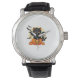 Niedliche schwarze Katze mit Bat Wings Pumpkin Wom Armbanduhr