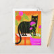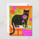 Niedliche schwarze Katze mit grünen Streifen in Ha Postkarte
