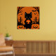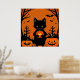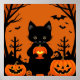 Niedliche Schwarze Katze mit Halloween-Kürbis Poster