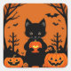 Niedliche Schwarze Katze mit Halloween-Kürbis Quadratischer Aufkleber