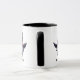Eine Tasse mit einer lustigen Halloween-Illustration für Katzenliebhaber. Eine mit Augen schwarze Katze mit einem großen schwarzen Hexenhut mit einem purpurpurfarbigen rosa Gürtel um den Rand.