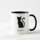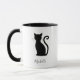 Niedliche Kaffee-Tasse mit einem schlichten Design mit einer schwarzen Katze-Silhouette und Ihrem Namen auf weißem Hintergrund. Die Hintergrundfarbe kann durch Klicken auf die Schaltfläche Anpassen auf eine beliebige Farbe geändert werden. Diese maßgeschneiderte Tasse ist ein tolles Geschenk für Katzenliebhaber.