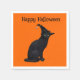 Eine niedliche schwarze Katze sitzt beharrlich mit einem Stern und Mond und hat schwarze Hexen verziert. Die Worte Happy Halloween können leicht in jeden Text geändert werden.
