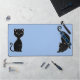 Niedliche schwarze Katzen auf hellblau Schreibtischunterlage