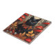 Niedliche Schwarzkatze im Herbstwald Fliese