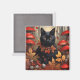 Niedliche Schwarzkatze im Herbstwald Magnet