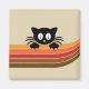 Abstrakte Retro-Illustration mit gelben, orangefarbenen, roten und braunen Streifen und niedlicher schwarzer Katzendekoration auf beigem Hintergrund für jeden Katzenliebhaber und Retro-Liebhaber. Es ist einfach, es anzupassen, indem Sie Ihren Namen/Monogramm etc. hinzufügen.