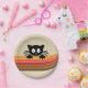 Niedliche Schwarzkatze mit Retrostreifen Pappteller