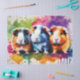 Dieses Gewebe besteht aus drei niedlichen Guinea Schweinen mit Farbspritzen. Niedliche, beliebte Haustiere auch für Kinder und Erwachsene! Ideal für Ihr Handwerk oder als Geschenkpackung!