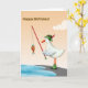 Niedliche und einfache personalisierte Geburtstagskarte mit einer Darstellung eines Möbelfischens. Ideal für Väter, Freunde und Kollegen, die Liebe angeln gehen. Der kleine Möwe hat sogar Hut und Stiefel! Der Text lautet "Glücklicher Geburtstag!", aber Sie können ihn mit Ihrer eigenen Nachricht personalisieren oder klicken, um den Schriftart, seine Farbe oder Größe weiter zu verändern. Illustriert und entworfen von Patricia Alvarez.