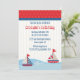 Die Geburtstagsfeier dieses 12x18 lädt mit zwei Segelbooten und einem Wal am unteren Ende des Tales ein. Der Hintergrund hat Streifen in der Mitte, Marineschiffe Punkt, und rote Sterne oben. Sie können Ihre Party-Informationen ganz einfach in der Mitte anpassen. Copyright © Sanqunetti Design