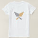 Dieser stilvolle modische T - Shirt hat zwei stilisierte, minimalistische, silber- und blassgoldene Trowelen, die sich überqueren, mit dem Text "Zuhause ist, wo Sie Ihr Handtuch aufhängen" in eleganten, kursiven, schwarzen Buchstaben. Das gleiche Design mit gekreuzten Handtüchern, aber kein Text, wird auf der Rückseite wiederholt. Es ist eine originelle und kreative Modeidee für einen Archäologen, einen Archäologen oder Anthropologen, einen Paläontologen, einen Gärtner, jemanden, der sich in der Zuhause-Renovierung befindet, oder jeden, der in seinem Alltag ein Trowel benutzt!