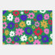 Dieses lebendige und spielerische Packpapier zeichnet sich durch ein niedliches und farbenfrohes skandinavisches Blume-Muster in Grün, Rosa, Blau, Rot und Gelb aus.
