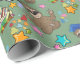 Niedliches Sloth Green Pattern Baby Dusche Geburtstagskorpierpapier Elegantes, lustiges und trendiges Verpackungspapier, um Ihrem Geschenk eine schöne Touch hinzuzufügen. Dieses Design zeichnet sich durch farbenfrohe Sterne / florale und bezaubernde Neigung auf grünen Hintergrund Fliesen Muster.