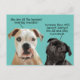 Diese beiden Hunde (ein amerikanischer Bulldog und ein Schwarzer Mops) diskutieren, warum alle Menschen Muzzles tragen (auch: Masken). Ihre Antwort? Muss es sein, weil die Menschen noch nicht den Sitz gelernt und Befehle bleibe haben. Eine lustige und niedliche Karte, die jedem, der die Maske getragen und während dieser Pandemie Schutz vor der Kamera gefunden hat, ein Lächeln bringen wird. Alle Text- und Hintergrundfarben sind anpassbar.