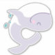 Niedlicher, weißer Wal, der einen Rücken drehe aus dem Wasser. Graphic Art von Sarah Trett für www.mylittleeden.com