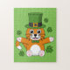 Niedliche St Patrick's Day Cat mit Kleeblättern Ca Puzzle