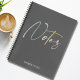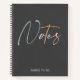 Ein niedliches, stilvolles Notizbuch. Mit dunkelgrauem Hintergrund ist das Wort Notes in Skripttypografie in hellgrünen, grauen, gelben und rosa Farben. Unterhalb, in der modernen hellgrauen Typografie steht "Dinge zu tun".