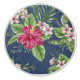 Schöne zeitgenössische pastellfarbene und leuchtend fuchsienfarbene Plumeria und Hibiskus Blume, grüne Blätter Aquarellmalerei auf einem dunkelblauen Hintergrund. Verziertes, elegantes und funky Hipster Design entstand für den extravaganten Innenarchitekten, die künstlerische Modediva, den beliebten angesagten Trend-Setter, Vintages Retro, Jugendstil-Deko-Art Stil oder abstrakt-Digital-Motiv-Liebhaber. Originelle, moderne und skurrile Dekoration Akzente für die Dekoration des Elternschlafzimmers oder Kinderzimmers, Wohn- oder Familienzimmer, Uni-Stube, Studio oder Appartement, Strandhaus, Landhaus, Blockhütte oder Sommerferien-Zuhause.