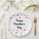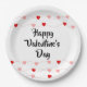 Niedliche String Hearts Happy Valentine's Day Red Pink Paper PlateEntworfen mit weißem, anpassbarem Hintergrund und kleinen roten und rosa Herzen auf einer Saite.  "Happy Valentine's Day" ist in schwarzer Schrift Schrift Schrift auf der Mitte und Sie können mit Ihrem eigenen Text anpassen, indem Sie einfach auf personalisieren Vorlage Option.  Dieses Design ist ideal für ein Valentines Party bei der Arbeit, Schule, Zuhause oder Büro.