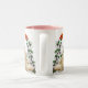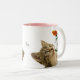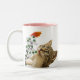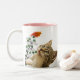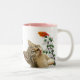 Niedliche Tabby-Katze, Blume und kleine Vögel Zweifarbige Tasse