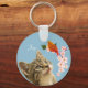 Niedliche Tabby-Katze, Blume und Roter Little-Voge Schlüsselanhänger