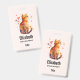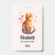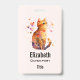 Namensschild mit einer schönen Aquarellbilder. Eine orangefarbene Tischkatze, die freundlich und glücklich mit herumwirbelnden Herzen aussieht.