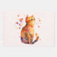 Papierblätter mit einer schönen Aquarellbilderzeichnung. Eine orangefarbene Tischkatze, die freundlich und glücklich mit herumwirbelnden Herzen aussieht.