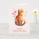 Valentinstag-Karte mit einer bezaubernden Aquarellbild. Eine orangefarbene Tischkatze, die freundlich und glücklich mit herumwirbelnden Herzen aussieht.