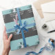 Niedliche Tandem Bike Bride and Groom Wedding individuelle Geschenkverpackung .. Hochzeitspapier in Aqua und Grautönen mit einer Braut in einem Hochzeitskleid mit einem kleinen roten Herz am Schleier und einem Bräutigam in seinem Anzug .. fügen Sie Ihren eigenen Text .. auch in anderen Größen erhältlich .. Designer Hochzeitsverpackungspapierrollen von Ricaso