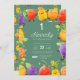 Dieses Design ist Teil der Kindergeburtssammlung "Dancing Fruit". Es verfügt über niedliche Schreibwaren mit tropischen Aquarellfrüchten wie Papaya, Trauben, Erdbeeren, Orangen und Ananas sowie Blätter und musikalische Noten. Ideal für die Geburtstagsfeiern eines Jungen oder Mädchens.