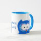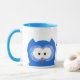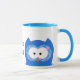 Fun Keramik Tasse mit Cartoon-Grafiken eines Eule-Kopfes in blau gemacht mit einem bunten Paisley-Muster um seine Augen. Blauer Text, auf der Vorderseite der Tasse liest Whos Tasse und kann personalisiert sein, zu lesen, was Sie gewollt. Niedliche Geschenkidee.
