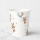 Watercolor Junge Babydusche Teddy Bear Party Cups zu unserer "We can bearly wait" Kollektion. Der niedliche Teddybär mit einem blauen und neutralen Ballon, der zwischen den Sternen schwebt.