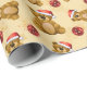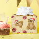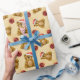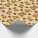 Ein niedliches Weihnachtsmuster lächelnder Teddybären, die rote und weiße Weihnachtsmannmützen tragen, sowie rote Ziergegenstände mit goldenen Sternen und Bändern.