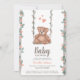 Feiern Sie Ihre Babydusche diesen niedlichen, von Hand bemalten, braunen Teddybär mit pfirsichrosa Herzen auf einem florenromantischen Holzschwung auf bearbeitbarem weißem Hintergrund.