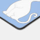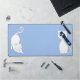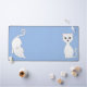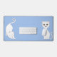 Niedliche Tiere der weißen Katze auf hellblau Schreibtischunterlage