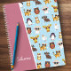 Geben Sie Ihrem kleinen Mädchen ein individuelles Notizbuch mit ihrem Namen und niedlichen Tieren in einer Sonnenbrille! Die Tiere befinden sich in einem Muster vor den Polka-Punkten und umfassen einen Tiger, Hund, Lamm, Eule, Giraffe, Pinguin, Hamster und Hühnchen. Das würde auch ein schönes Notizbuch für einen kleinen Jungen machen, der Tiere Liebe!
