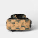 Niedliches Tiger- und Weihnachtsbaummuster auf beige- und schwarzem Hintergrund, anpassbares Rucksack-Design mit Monogramm-Option.