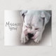Ein bezaubernder weißer Boxer auf einer schön bedruckten Postkarte. Der Text "Vermisstes Sie" ist anpassbar