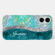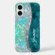 Niedliche türkisfarbene Imitate Glitzer Monogramm Case-Mate iPhone Hülle
