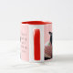Foto einer niedlichen Tuxedokatze mit einem rosa und weiß gestreiften Kleid, mit einem grünen Knochen darauf, mit der Botschaft: Wenn ich an Sie denke, denke ich an den Frieden, wird auf zwei Seiten von benutzerdefinierten Tasse gedruckt. Die Meldung kann auf dem Vorlagenformular angepasst werden.