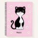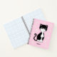 Niedliche Tuxedo Katze und Blume auf hellrosa Notizbuch